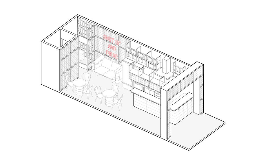Um bar de drinks com referências automotivas. A proposta consistia na transformação de uma pequena loja de 20 m² em um espaço de socialização temático. A partir desta demanda se desenvolveu um projeto concentrado na ressignificação de materiais. Grande parte do mobiliário e peças de decoração foram encontrados em ferros-velhos e locais de despejo.